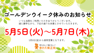 ゴールデンウィーク休みとさせていただきます。