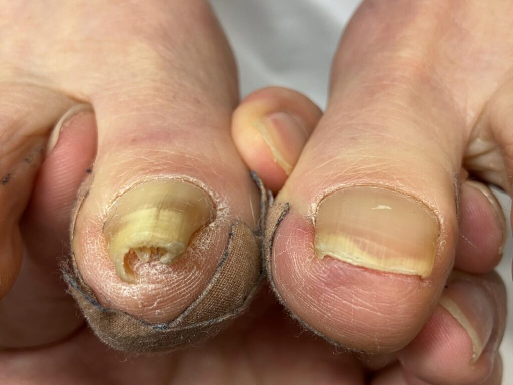 靴を履かない、歩かない環境下にある方でも実際に重度の巻き爪になっています。