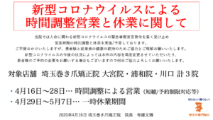 それに伴い、大宮院と浦和院も同時に時間短縮営業と一時休業を行います。