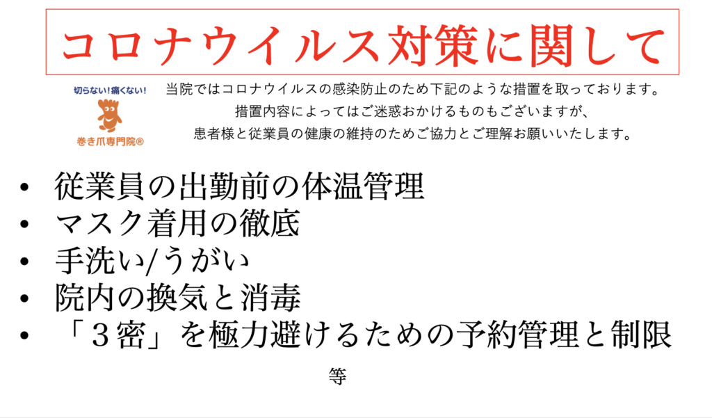 【お知らせ】コロナウイルス対策に関して